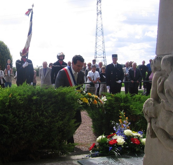 Jaky Raguin, maire de Creney, dépose une gerbe au pied du monument