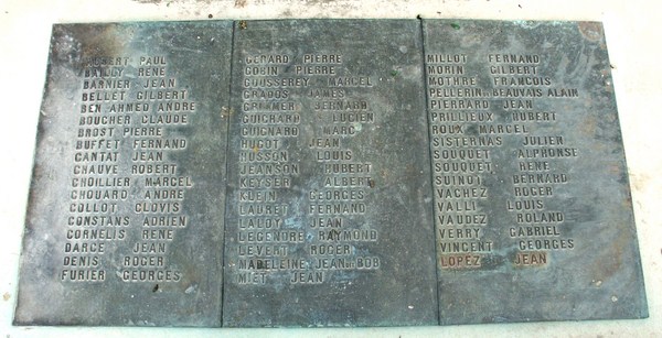 Au pied du monument les noms des fusillés et exécutés sont gravés sur une plaque de bronze scellée dans la pierre.