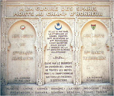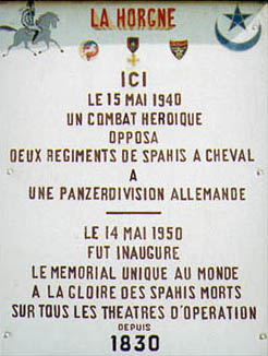 La 3ème Brigade de Spahis a résisté pendant 10 heures aux blindés allemands. Elle compte 700 tués et disparus dont les deux chefs de corps. Les survivants qui ont pu se replier reforment des escadrons et continuent de se battre jusqu’à l’armistice. Le site