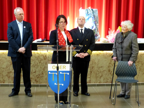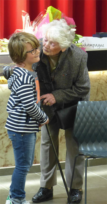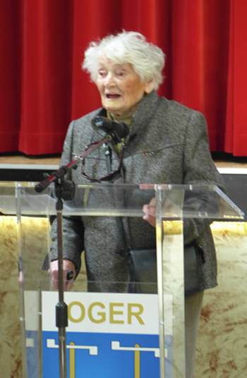 Tout au long de cette inauguration qui s'est déroulée devant la mairie d'Oger, puis dans la Salle des fêtes de la commune où ont été prononcés plusieurs discours, Yvette LUNDY est restée debout.