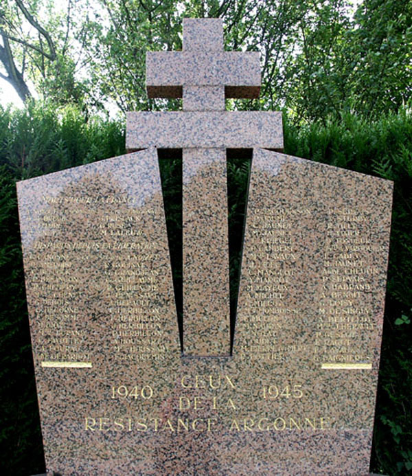 Taillé dans le marbre, il est constitué d’une Croix de Lorraine encadrée d’une stèle en V sur laquelle à la date du 4 novembre 2009 étaient gravés 104 noms de résistants ayant appartenu au groupe CDLR-Argonne.