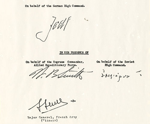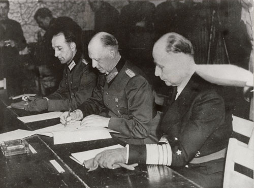 la signature de la capitulation allemande, La France et la victoire alliée En 1985, l'épouse du général SEVEZ, seul officier français présent à Reims le 7 mai 1945, a offert au musée le képi et les décorations de son mari.