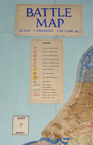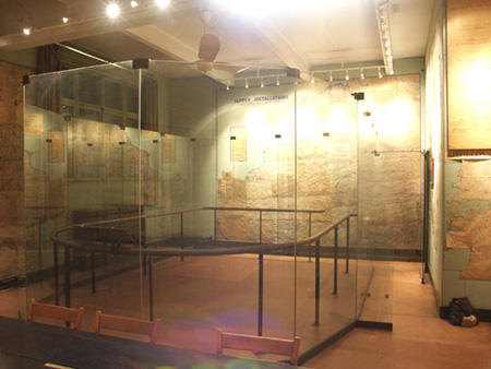Le hall d'entrée La War Room ou Salle des cartes Dans la Salle des cartes , au 1er étage, les vitrines ont été démontées, les cartes restaurées et un espace vitré a été aménagé pour contenir les visiteurs et éviter toute dégradation.