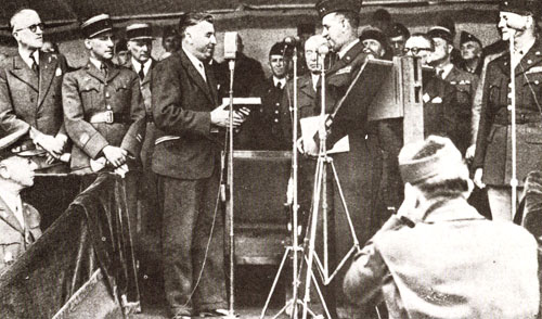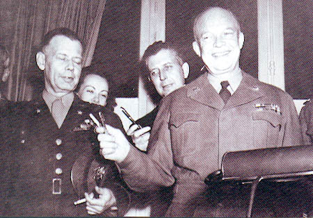 FRIEDEBURG, commandant en chef de la Kriegsmarine Au second plan et de face, les officiers alliés 1/ Le général MORGAN,