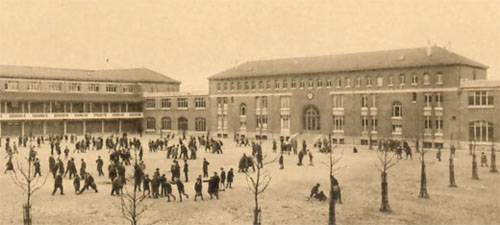 La cour intérieure du collège avant la 2ème guerre mondiale Le bureau du général EISENHOWER, commandant suprême du Corps expéditionnaire allié en Europe et la « War Room (Salle de guerre) – appellation utilisée par les Alliés pour désigner la Salle des cartes où a été signée la capitulation de l'Allemagne nazie le 7 mai 1945 – , avaient été aménagés dans cette aile du bâtiment situé à l'angle de la rue Marie-Clémence Fouriaux et de la rue Jolicoeur où se trouve l'entrée principale du collège par laquelle on accédait au Quartier général