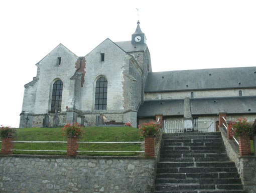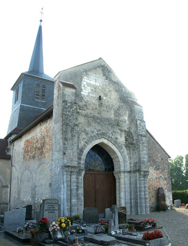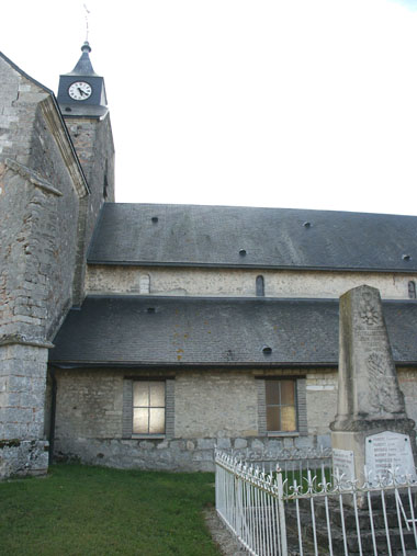 Contre le mur de l'église de Clamanges entouré du cimetière