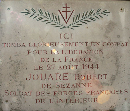 Le nom de Robert JOUARE est aussi gravé sue le Monument aux morts communal de Sézanne.