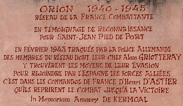 de la stèle semblable à celle de Coole La stèle commémporative apposée sur les remparts de Saint-Jean-Pied-de-Ports (Pyrénées-Atlantiques)