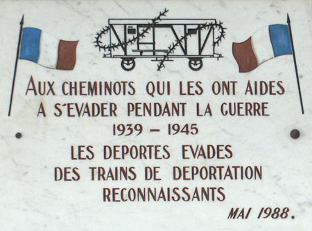 Le 15 mai 1988, une plaque commémorative a été inaugurée en présence de René LA COMBE, ancien chef de Résistance-Fer et Compagnon de la Libération, pour rendre hommage aux cheminots qui sont venus en aide aux déportés évadés. La gare SNCF de Châlons a été choisie pour y apposer cette plaque du souvenir, parce que la majorité des convois de déportés en partance pour l'Allemagne ont transité par cette gare et que plus de 15 % des évasions se sont effectuées dans le secteur de Châlons-sur-Marne, en particulier entre Châlons et Vitry-le-François.