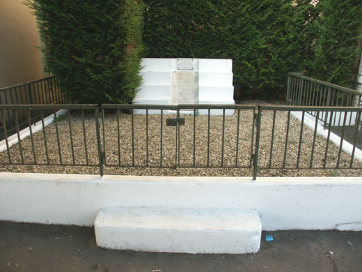 Cette stèle adossée à une haie vive et entourée d'une grille se trouve sur la gauche lorsqu'on accède au quai numéro 1, et un un peu en retrait du bâtiment principal.
