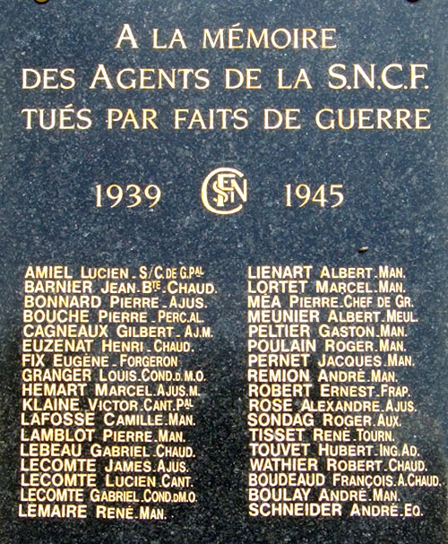 Une plaque a été scellée sur la façade de la gare d'Épernay, à gauche de la porte d'entrée, à la mémoire de 34 agents de la SNCF « tués par faits de guerre » pendant la 2e guerre mondiale.