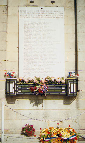 « La plaque des déportés apposée sur la façade de la prison de Châlons-sur-Marne a été inaugurée le dimanche 2 mai 1948 et un compte-rendu a été publié dans le Journal de la Marne des lundi 3 et mardi 4 mai 1948.
