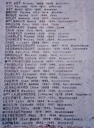 La plupart des déportés qui figurent sur cette plaque ont été détenus dans le quartier allemand de la prison de Châlons-sur-Marne avant d’être déportés en Allemagne. Cependant plusieurs d’entre eux ont été arrêtés et incarcérés ailleurs : Rachel, Solange et Marc Ast à Lyon, André Bègue à Paris, Paul Brillon à Limoges, Jean Caïn dans le Lot, Michel Charles dans le Loiret, André Jacquerey en Côte d’Or et Paul Pétremont dans les Vosges.