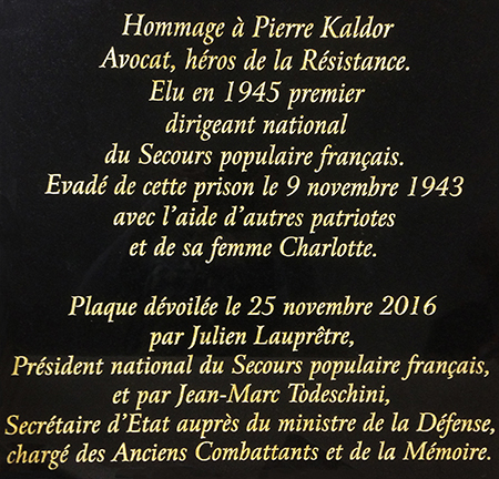 Lieux de mémoire > Le souvenir de la 2ème GM... > Les plaques > Plaque en hommage à Perre Kaldor à la prison de Châlons-en-Champagne