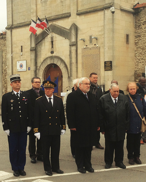 Dépôt de gerbes au pied du monument aux martyrs de la Résistance