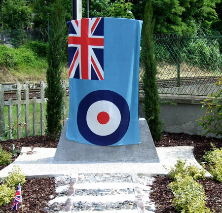recouverte d'un voile aux couleurs du Royaume-Uni et de la Royal Air Force