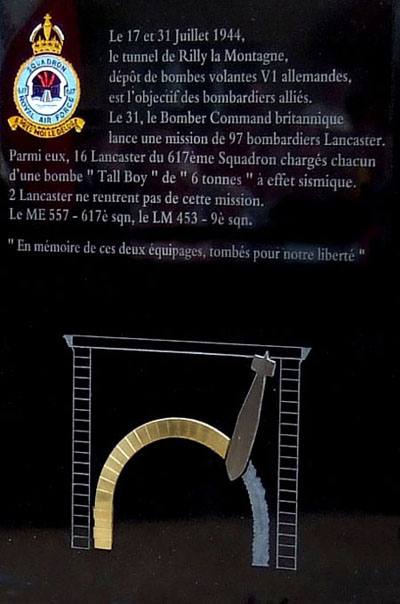 46 bombardiers Lancaster ont largué 241 tonnes de bombes sur l'entrée du tunnel, côté Rilly.
