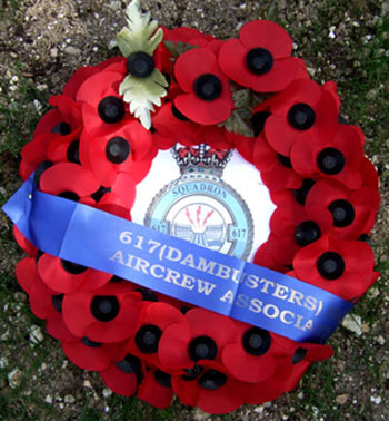 La stèle sur laquelle est gravé l'écusson du 617e Squadron de la RAF