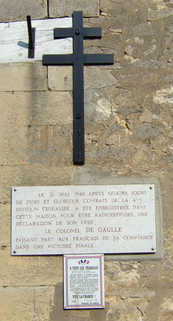 À cette occasion, une plaque commémorative a été inaugurée à l'entrée de la cour de ferme où a été enregistrée le 21 mai 1940 l'allocution du colonel DE GAULLE.