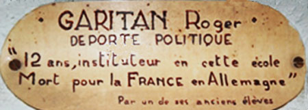 Roger GARITAN figure aussi sur la plaque commémorative érigée à l’École normale de garçons de Châlons-sur-Marne, qui a été ultérieurement transférée dans la cour d’honneur de l‘IUFM ( ex École normale de filles ) de Châlons-en-Champagne.