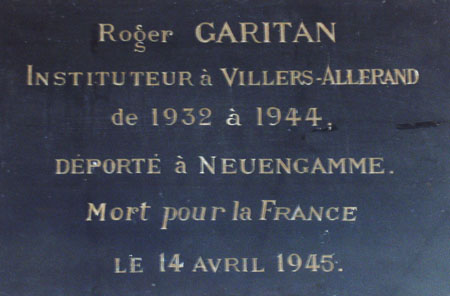 Le 2 mars 1946, le conseil municipal de Villers-Allerand a décidé d’honorer la mémoire de son instituteur Roger GARITAN, « mort pour la France ».