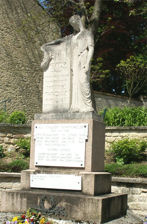 la main une couronne de laurier, s'appuie sur une stèle rendant