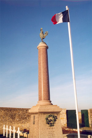 Les noms des morts de la 1ère guerre mondiale sont gravés sur la colonne de marbre brun surmonté d'un coq en bronze, ceux de la 2ème guerre mondiale sur le socle en pierre, sous la couronne de laurier.