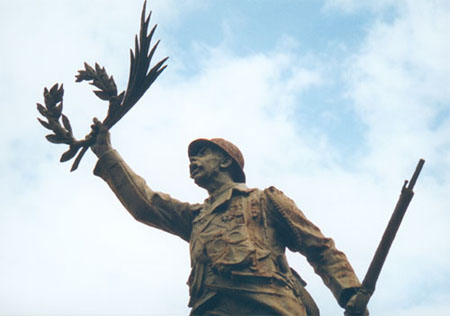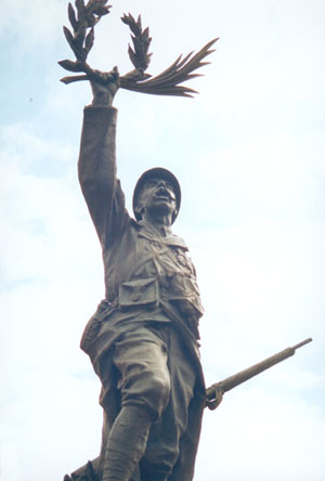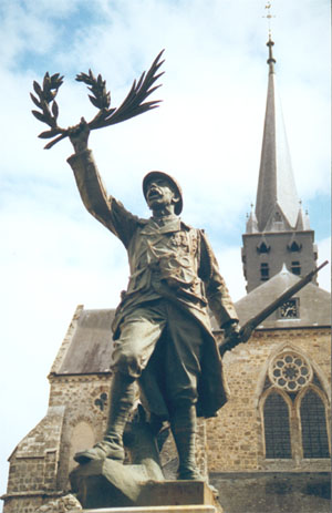 la Grand Place, dans l'axe de l'Abbatiale, grimpé sur un socle