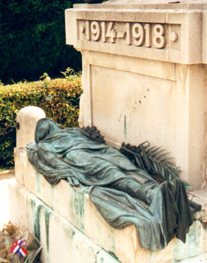soldat casqué, amaigri, allongé, est recouvert d'un