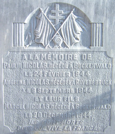 À gauche , la plaque honorant la mémoire de la famille Nicolas