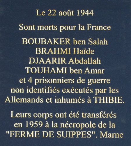 À droite une nouvelle plaque honore la mémoire d'un spahi algérien et de trois tirailleurs tunisiens |
