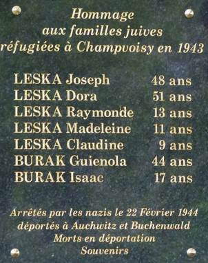Le 29 avril 2018, à l’occasion de la Journée du souvenir des victimes et des héros de la déportation, a été inaugurée dans le village de Champvoisy, proche de Dormans, une stèle « En hommage aux familles juives réfugiées à Champvoisy en 1943 ». Cette stèle, érigée à côté du monument aux morts communal, honore la mémoire des familles LESKA et BURAK, qui ont été arrêtées dans cette commune le 22 février 1944, puis déportées à Auschwitz par le convoi 69 du 7 mars 1944.