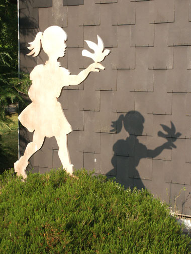 à l'entrée de l'école représente une petite fille portant sur sa main