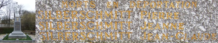 « SILBERSCHMITT Pierre », Pierre SILBERSCHMIT (45 ans) et « SILBERSCHMITT Jeanne », Jeanne SILBERSCHMIT née HIMMLER (44 ans), son épouse, déportés à Auschwitz par le convoi 74 du 20 mai 1944 ; « SILBERSCHMITT Jean-Claude », Jean-Claude SILBERSCHMIT (17 ans) leur fils, déporté par le convoi 73 du 15 mai 1944 à destination de Kaunas et de Reval.