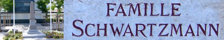 « Famille SCHWARTZMANN », Michel SCHWARTZMANN (51 ans) et son épouse Henriette née MOSCHKOWITZ (46 ans) et dix de leurs treize enfants, Simone (17 ans), Robert (15 ans), Antoinette (13 ans), Jeanne (10 ans), Pierre (11 ans), Marcel (8 ans), Maurice (6 ans), Madeleine (5 ans), Ginette (3 ans) et Marie-France (11 mois), déportés à Auschwitz par le convoi 67 du 3 février 1944 par lequel ont aussi été déportées leurs filles Suzanne (23 ans) et Léa (19 ans), qui ont survécu à la Shoah