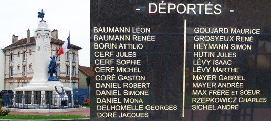 - « Veuve BUCHOLTZ Hélène et ses quatre enfants », Hélène BUCHHOLZ Hélène née ALTER (40 ans), déportée à Auschwitz par le convoi 67 du 3 février 1944 avec ses 4 enfants Émile (14 ans), Alexandre (12 ans), Nicole (10 ans) et Paul (4 ans) ; le père Kalmen BUCHHOLZ, engagé volontaire dans l'Armée française en 1939, a été tué au combat le 17 juin 1940.
