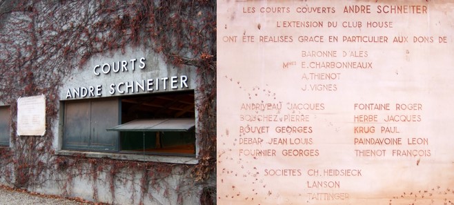 Après la 2e guerre mondiale, des travaux d’extension ont été réalisés avec la construction de courts couverts qui portent le nom d’un ancien membre du club, André Schneiter, chef des FFI de l’arrondissement de Reims exécuté par les nazis en août 1944. Son nom est gravé sur la plaque commémorative qui a été ajoutée dans le hall d’entrée pour rendre hommage à dix-huit membres du club, sous l’inscription « À nos camarades victimes de la guerre 1939-1945 » :