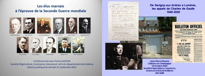 Jean-Pierre HUSSON, " Les élus marnais à l'épreuve de la Seconde Guerre mondiale ", Mémoires de la Société d'agriculture, Sciences et arts du département de la Marne, tome CXXVII, 2013.