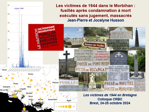 En 2024, nous avons participé au colloque Les victimes de 1944 en Bretagne organisé par le Centre de recherche bretonne et celtique de l'Université de Bretagne occidentale à Brest où nous avons présenté une contribution sur " Les victimes de 1944 dans le Morbihan ".
