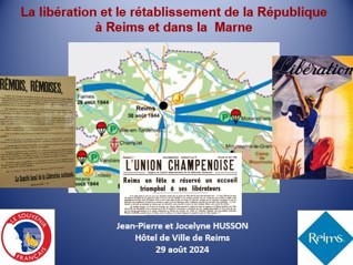- " La libération et le rétablissement de la République à Reims et dans la Marne ", 80e anniversaire de la Libération, conférence, Hôtel de Ville de Reims, 29 août 2024.