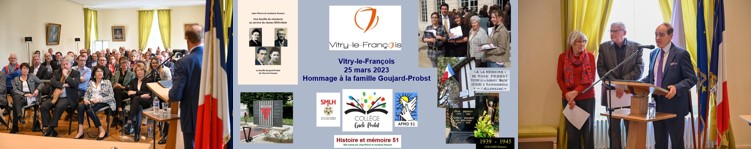 Une famille de résistants au service du réseau Mithridate. La famille Goujard-Probst de Vitry-le-François, Société des membres de la Légion d'honneur, Délégation marnaise des Amis de la Fondation pour la mémoire de la déportation, Département de la Marne, 2023, monographie présentée le 25 mars 2023 à Vitry-le-François dans le cadre d'une journée d'hommage à la famille Goujard-Probst.